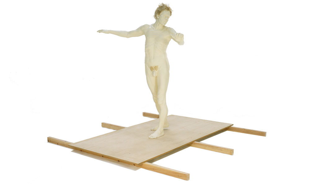 White-pigmented fibreglass resin, wood, rope, canvas. Life-size